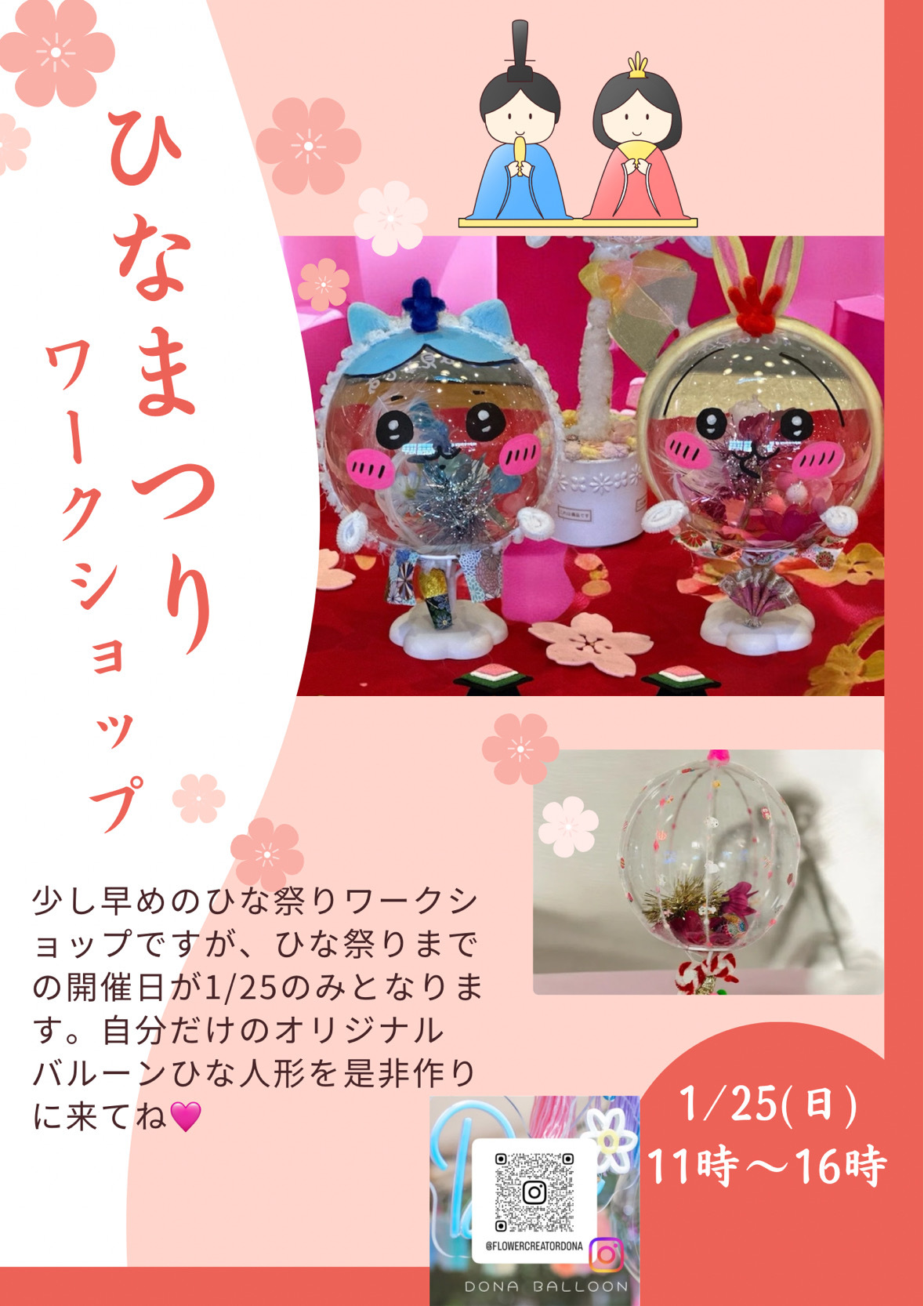 | イベント内容 | 自分だけのオリジナルバルーンひな人形作り |
