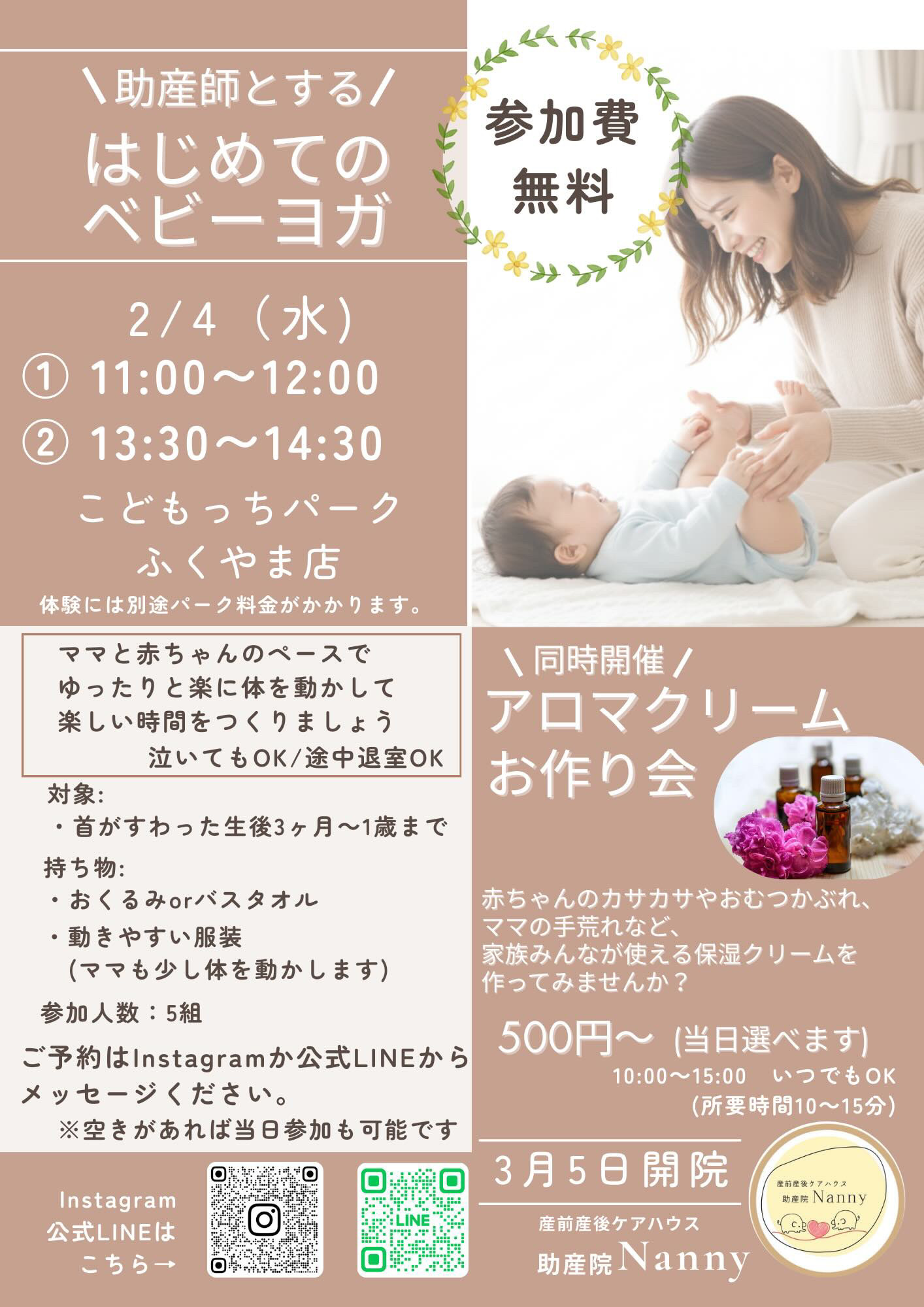 助産師とする はじめてのベビーヨガ/アロマクリームお作り会