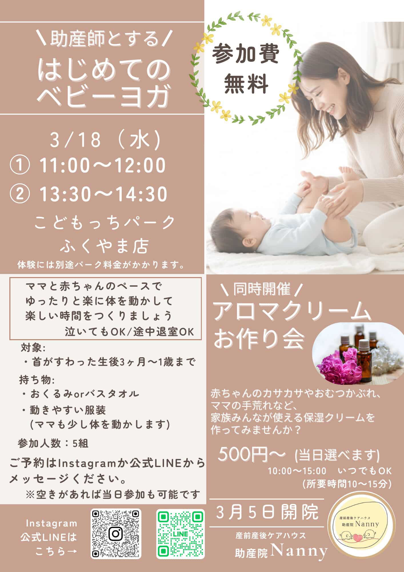 助産師とする'はじめてのベビーヨガ'&アロマクリームお作り会